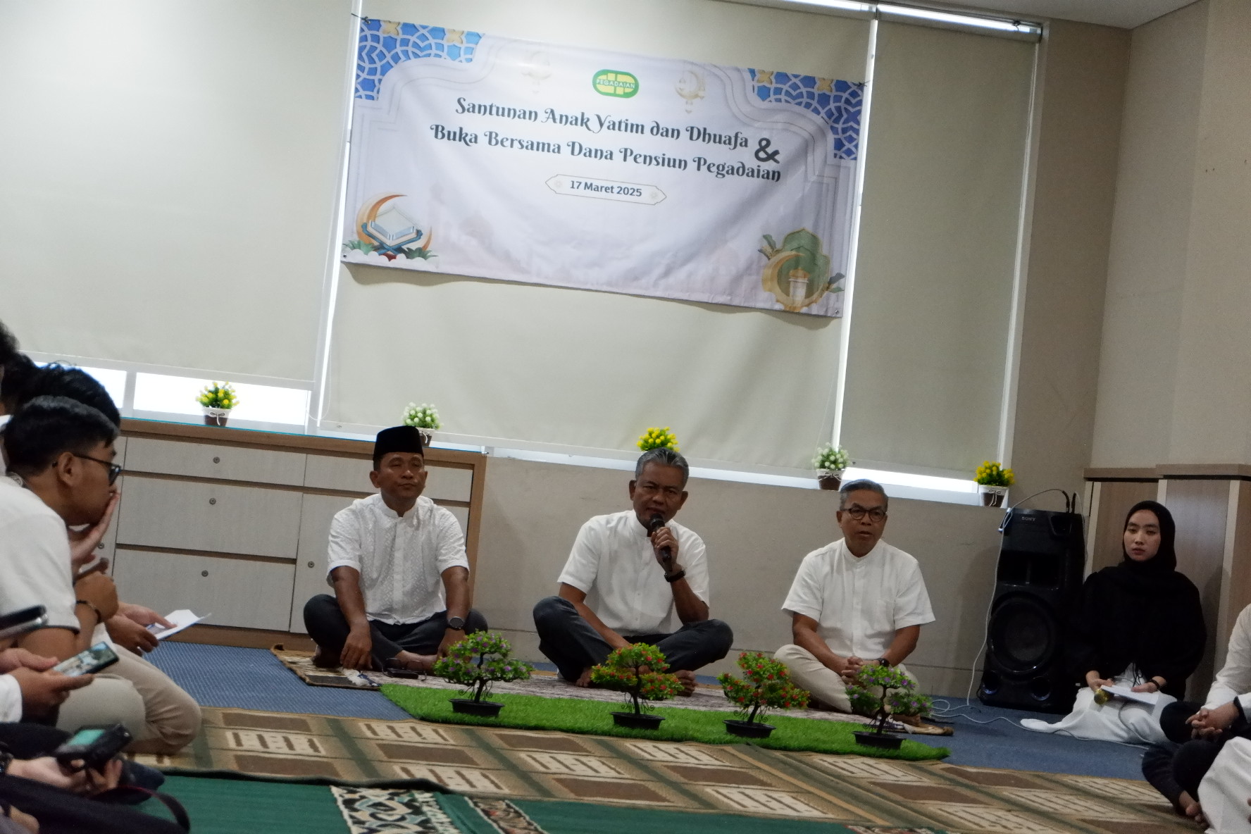 Dalam sambutannya, Bapak Ismail Ilyas selaku Direktur Utama Dana Pensiun Pegadaian menyampaikan bahwa kegiatan santunan ini tidak hanya dimaknai sebagai bentuk pemberian bantuan secara material, namun juga sebagai sarana untuk berbagi kebahagiaan, memberikan dukungan moral, serta menumbuhkan semangat bagi anak-anak yatim dan dhuafa agar tetap optimis dalam meraih cita-cita dan masa depan yang lebih baik.